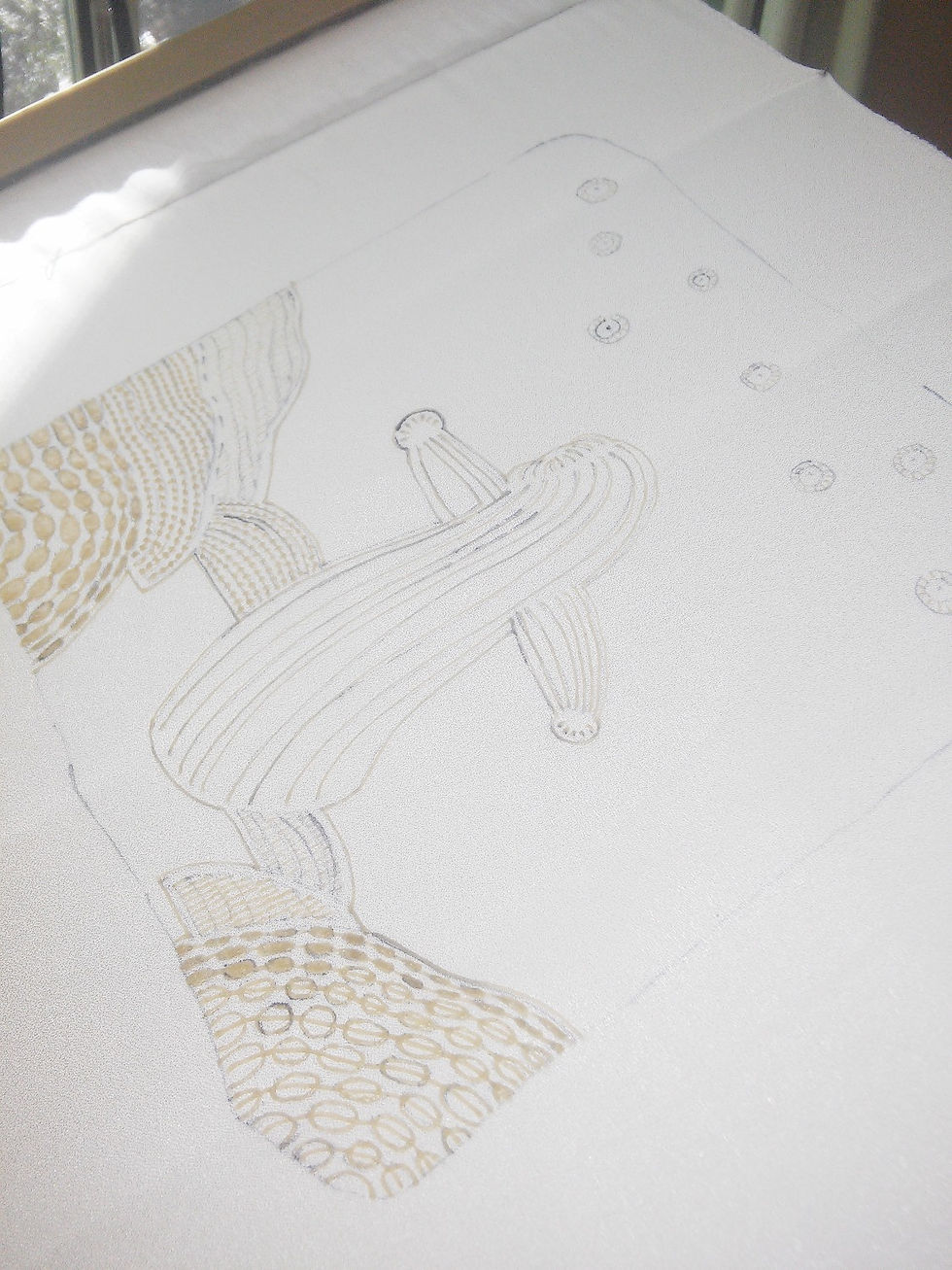大学のアトリエはもう入試で使えないので、実家で作業。 「台所に黒いの(染料)ついてんだけど!!」との家族から寄せられるクレームをとりあえずスルーして搬入まで頑張ります(^^)